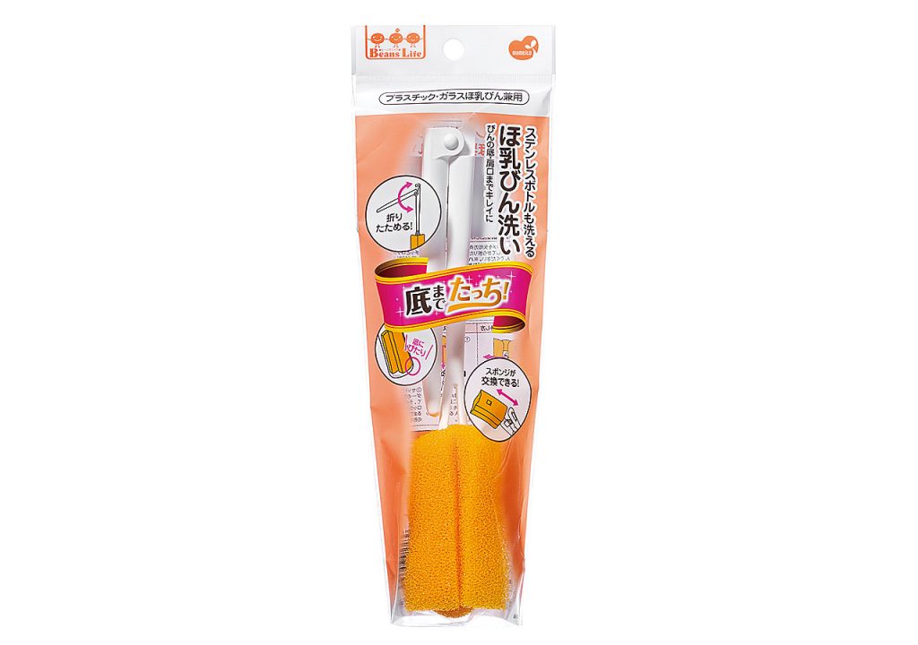 プラスチック・ガラスほ乳びん兼用。びんの底・肩口までキレイに。折りたためる、スポンジが交換できる!(別売:取替用スポンジ)