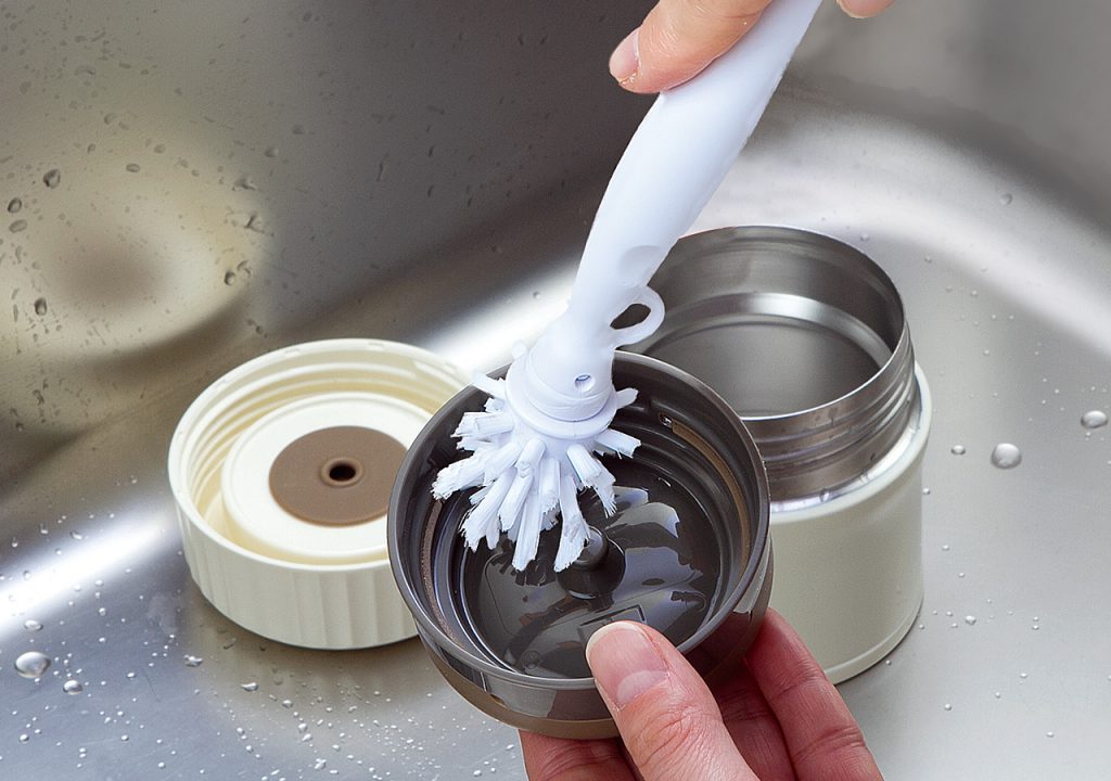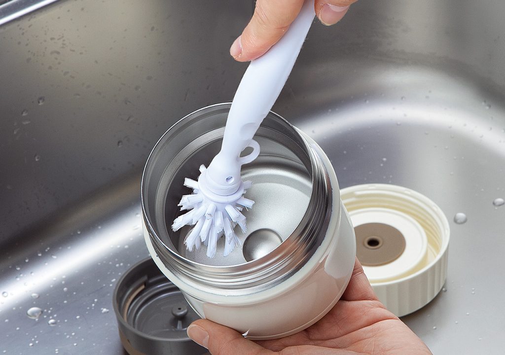 360度全方向のブラシがスープジャー底のすみに届く。