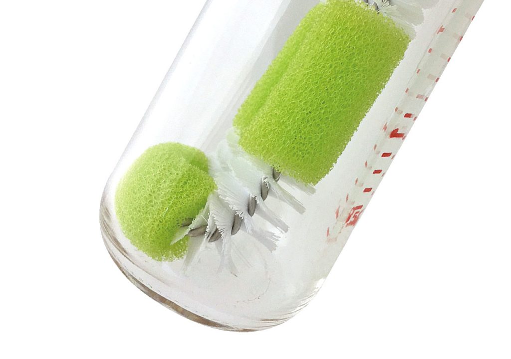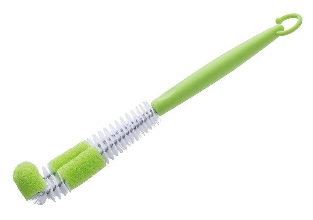 スポンジとブラシのコンビネーション。先曲がりなので底のすみまで届きます。