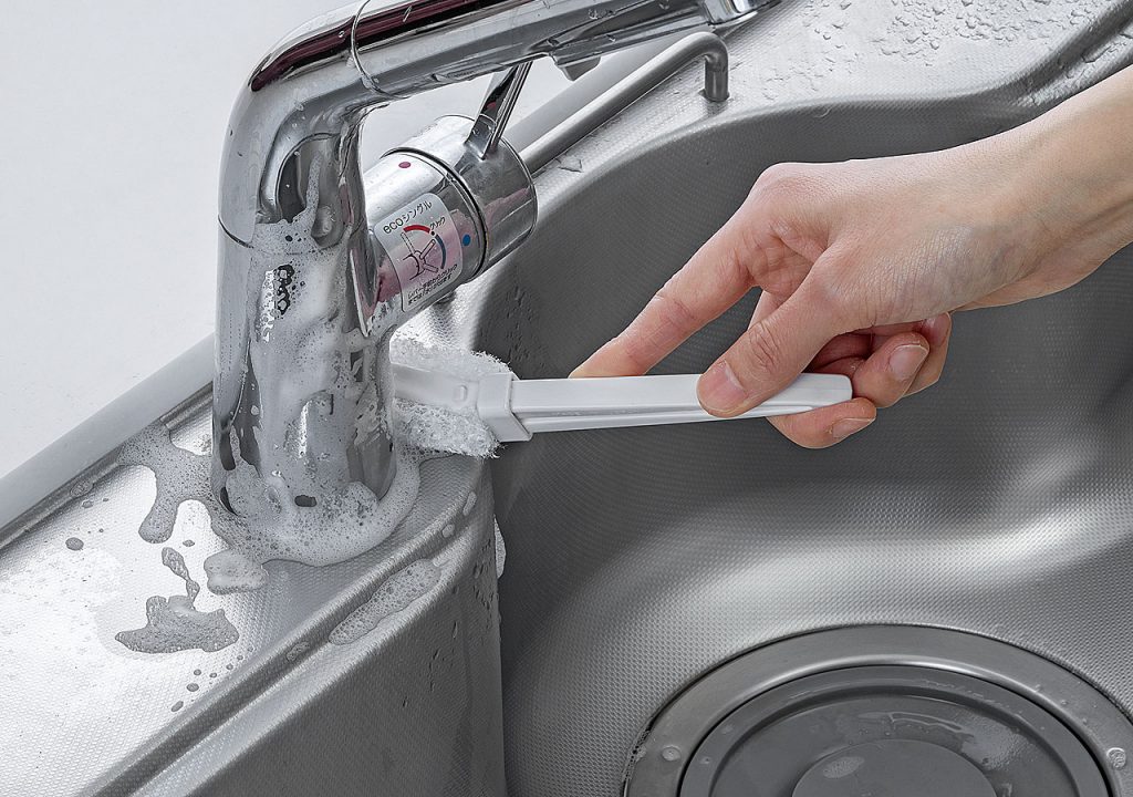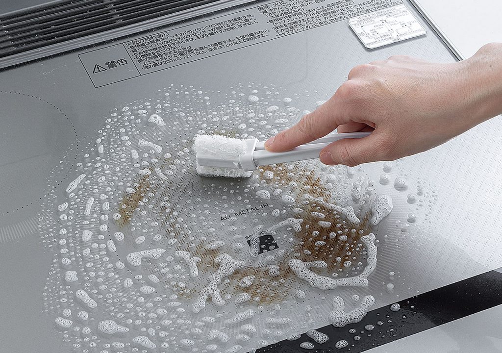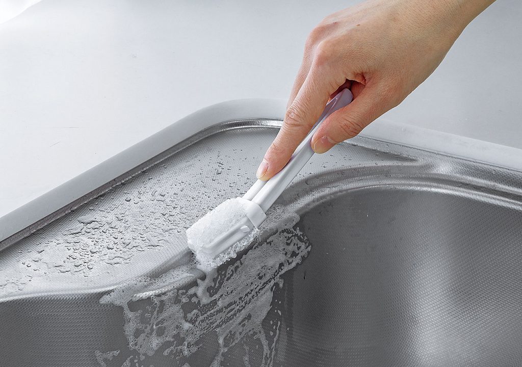 洗剤と一緒に汚れを落とす樹脂加工のクリーナー。水アカ落とし洗剤用。