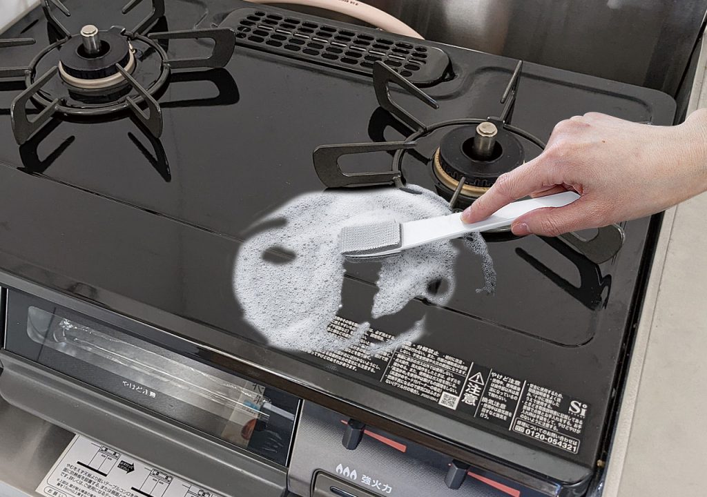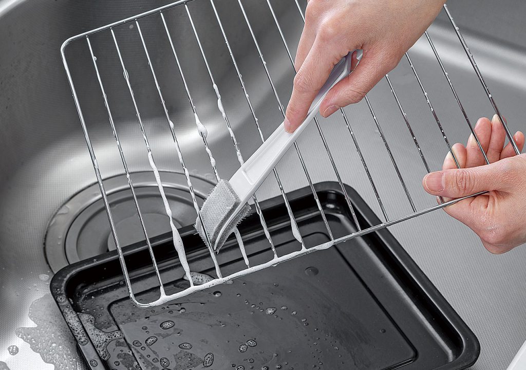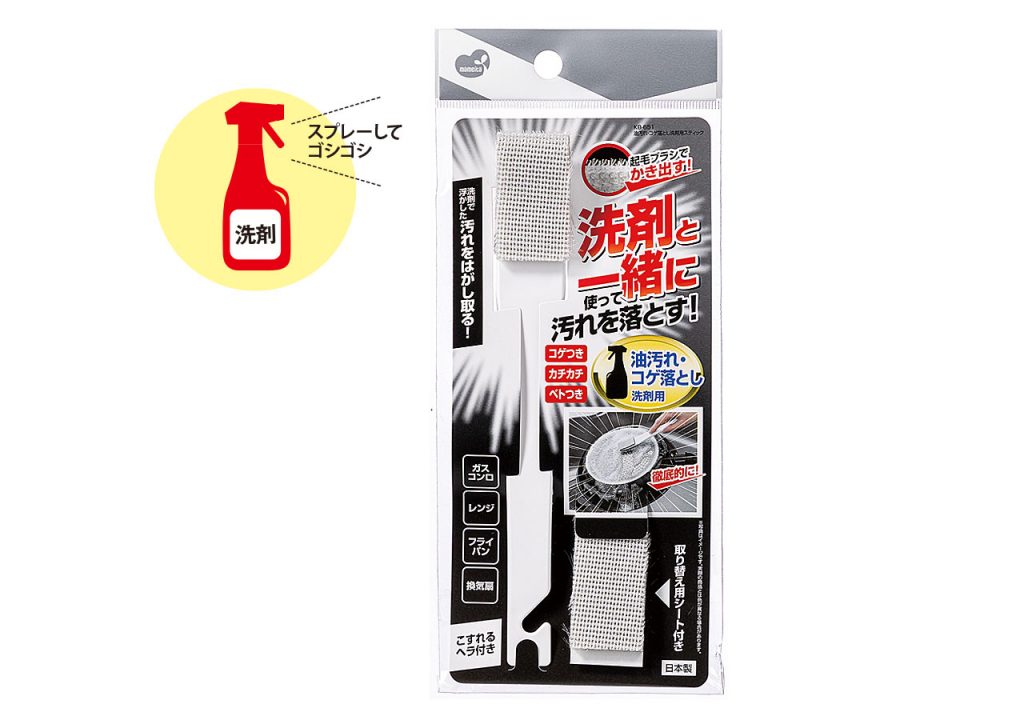 洗剤と一緒に汚れを落とす起毛ブラシのクリーナー。油汚れ・コゲ落とし洗剤用。