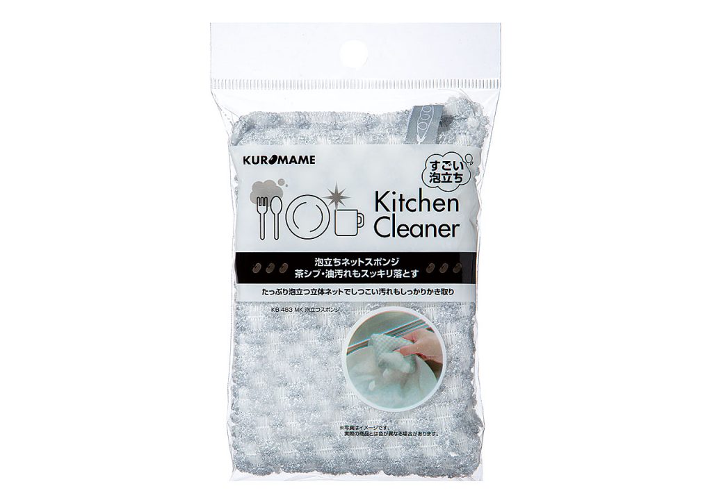 泡立つ立体編みのネットで茶シブ・油汚れを落とす。