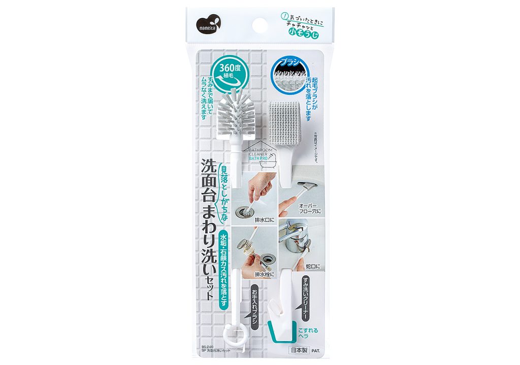 洗面台まわりのお掃除に役立つ 360度植毛ブラシと 起毛クリーナーのセット。
